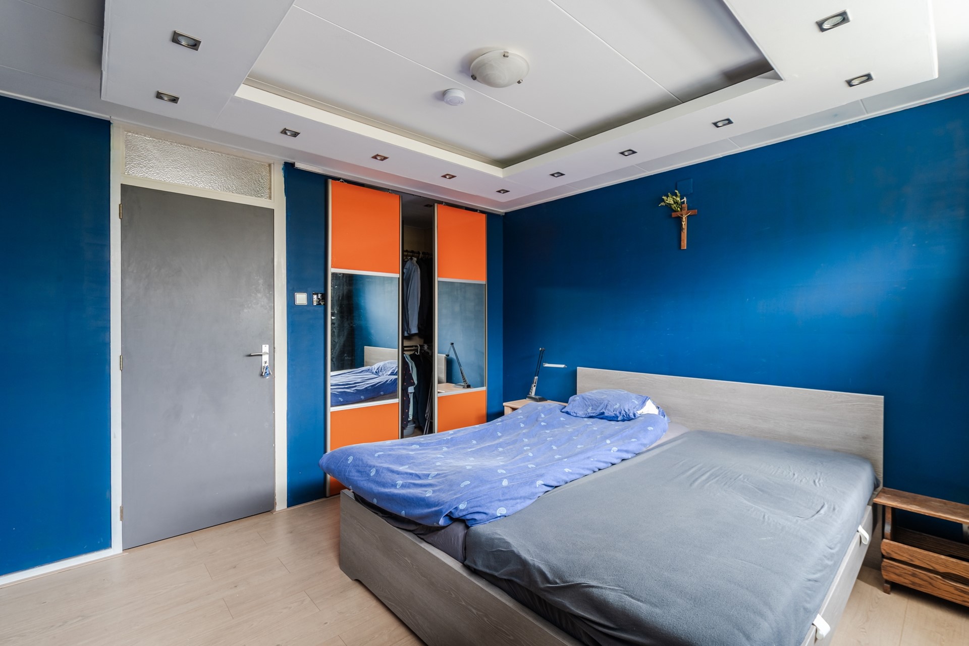 De grote (ouder)slaapkamer met toegang tot de inloopkast is aan de achterzijde van de woning gelegen en voorzien van een verlaagd plafond met inbouwspotjes. De 2e grote slaapkamer op deze etage is aan de voorzijde van de woning gelegen en is net als de andere kozijnen voorzien van isolatieglas en een luchtrooster. De 3e slaapkamer is aan de achterzijde gesitueerd en geeft toegang tot het balkon.