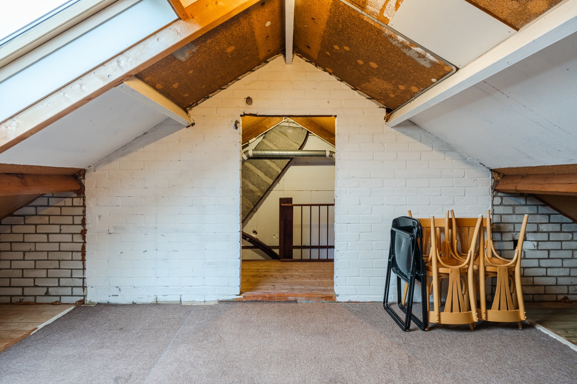 De overloop is ruim van opzet en geeft toegang tot 3 (voorheen 4) slaapkamers, een inloopkast (voorheen de badkamer), de badkamer en tot slot de vaste en afsluitbare trap naar de 2e etage,