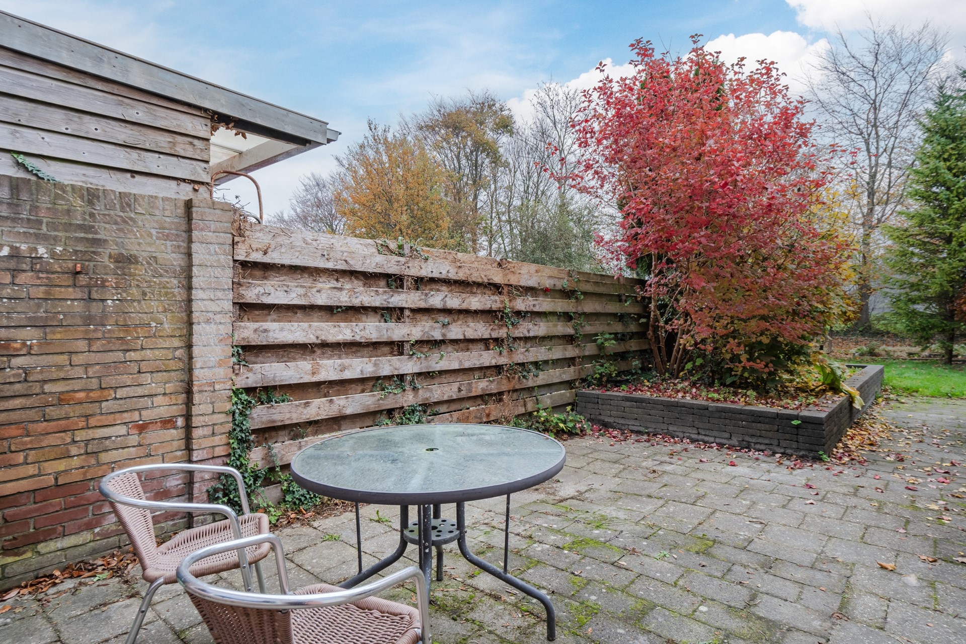Er zijn geen achterburen, achter de bomenrij is er vrij uitzicht omdat de woning aan de buitenrand van het dorp is gelegen.